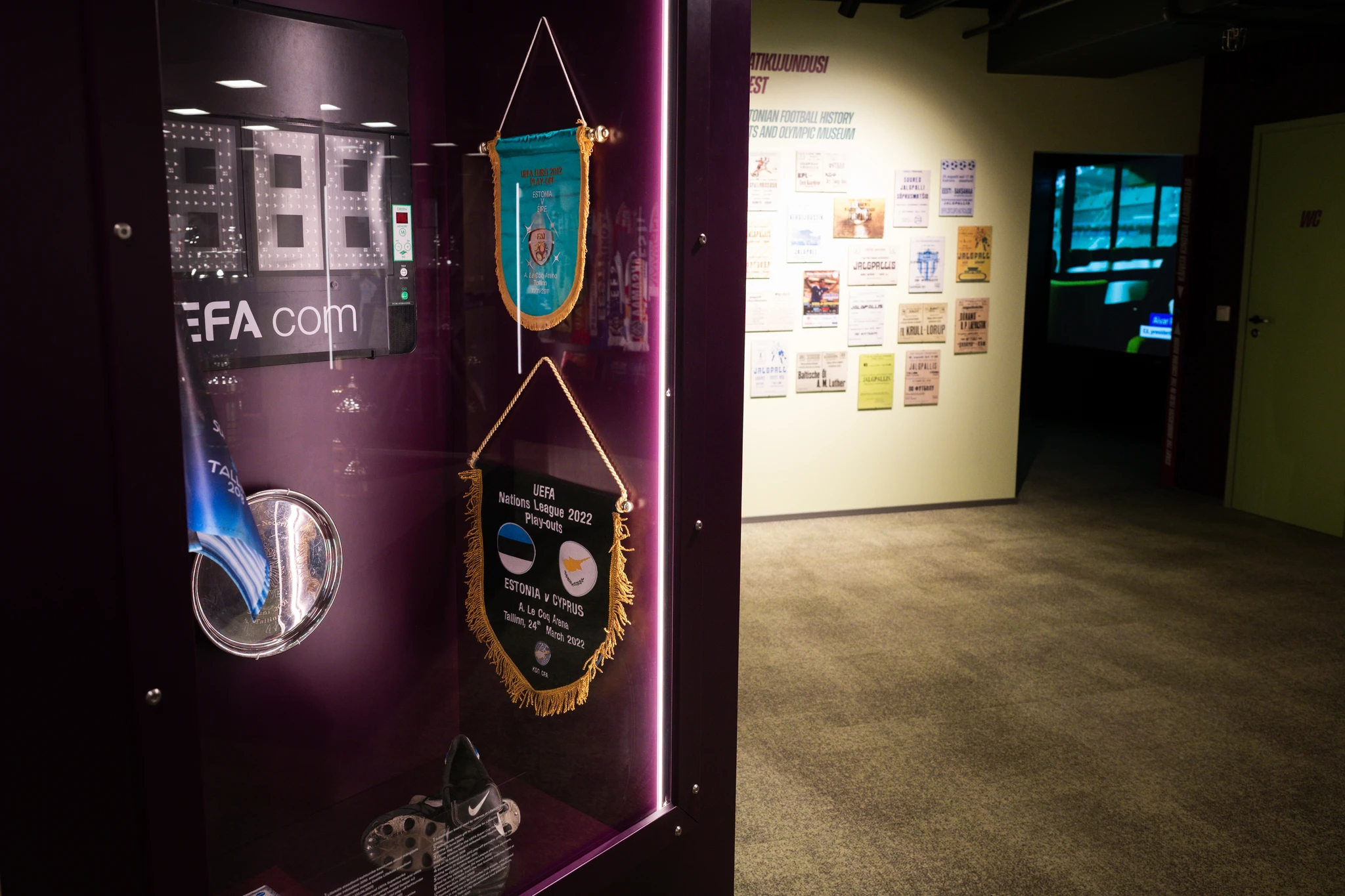 Vitriinisaalis eksponeeritakse haruldasi Eesti jalgpallilooga seotud esemeid, sportlaste varustust, karikaid ja medaleid – iga vitriin jutustab oma loo: Eesti jalgpallitipud, kohtunike lugu, mängureeglid, fännimaailm, rahvusvahelised tähed ja palju muud. Jalgpallimuuseum hakkab peagi pakkuma ka erinevaid haridusprogramme ja eksklusiivseid A. Le Coq Arena staadionituure.